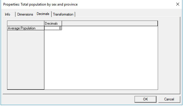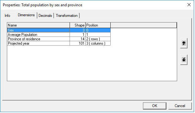 - Both parameter and output tables can have any number of dimensions. Their complexity can vary from a simple, single on/off check box to multidimensional tables by age, sex, province, year, etc. The user controls which two dimensions of a multi-dimensional table are displayed and which dimensions are selected from a drop-down list. This and other table functionalities are accessible when right-clicking on a table.