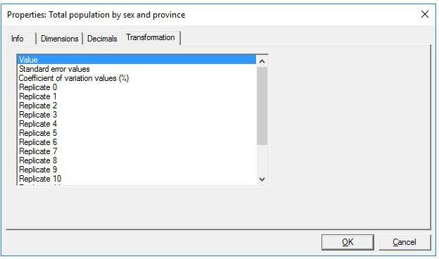 - A list of tables displayed directly within the application. Besides the table values, tables can contain additional views (e.g., of distributional information of table cells) and functionalities. With multi-dimensional tables, users control the order in which to display table dimensions and details like the number of decimal places. Tables can also contain documentation. Tables are labeled, adding to the readability of the output.
