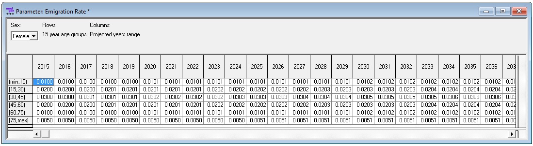 double EmigrationRate[SEX][AGE15][PROJ_YEARS]; //EN Emigration Rate